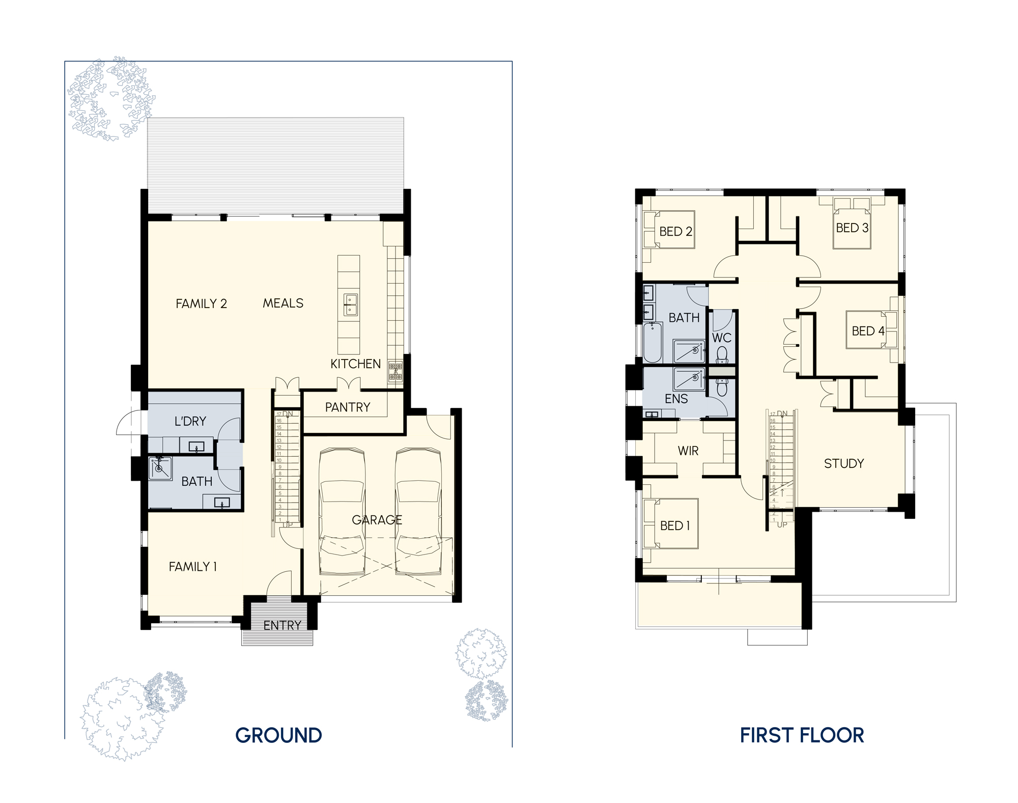 With an open plan living area towards the back of the home which opens onto a patio, Anglesea provides the perfect space for a growing family. The home offers five bedrooms and three bathrooms alongside a study room located upstairs for a peaceful place to work and study.